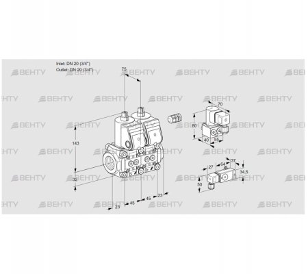 VCS1E20R/20R05NNWR/PP-2/PPBY (88104988) Сдвоенный газовый клапан Kromschroder 88104988, купить в Омске в наличии на складе.